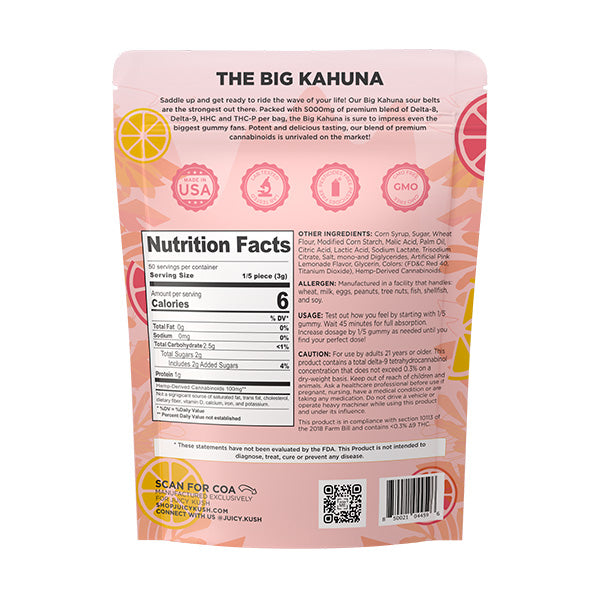 Juicy Kush Big Kahuna Sour Belt Gummy Flavors