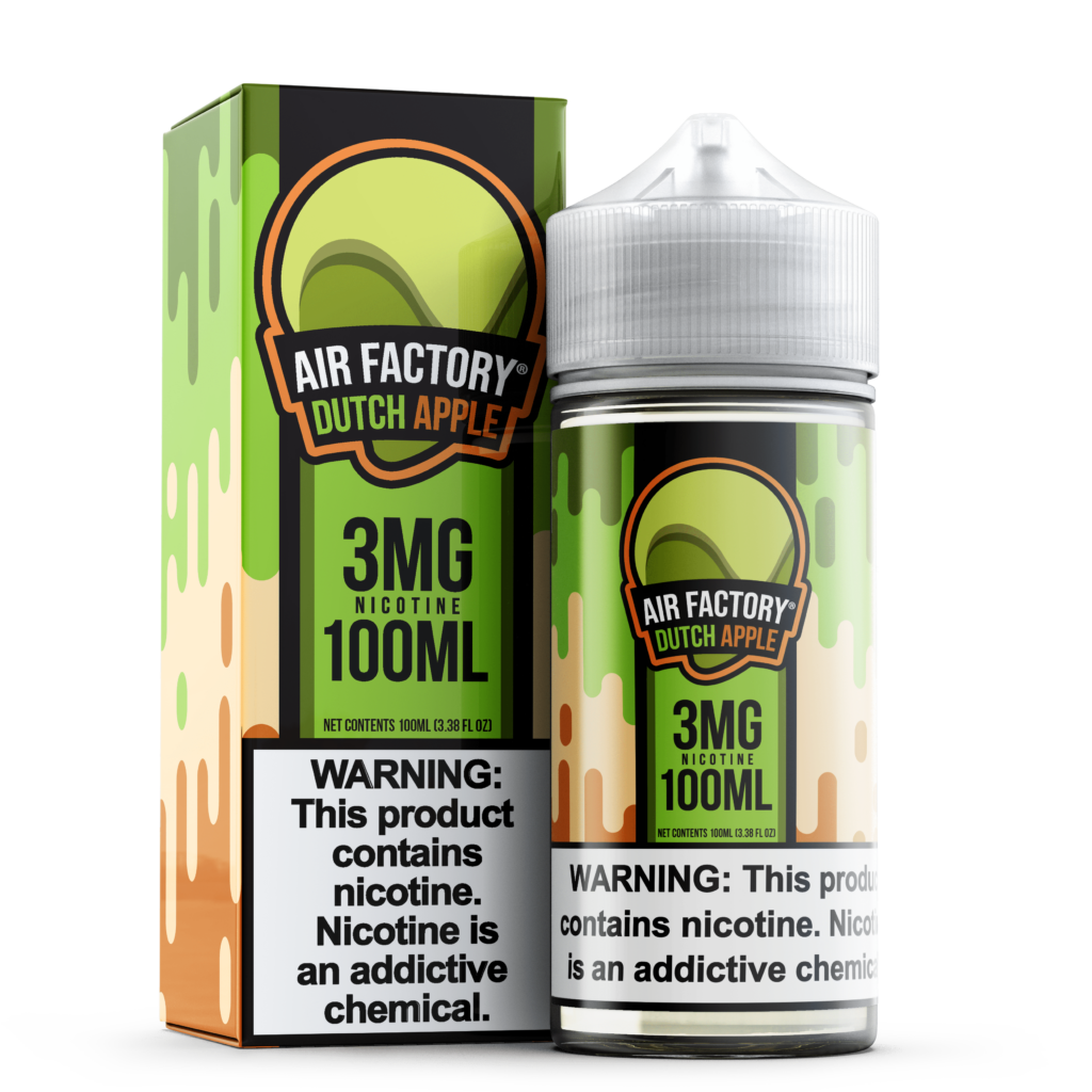 Introducing Dutch Apple (Formerly Apple Pie) by Air Factory E-Liquids, a tantalizing e-liquid that captures the essence of freshly baked apple pies bursting with gooey sweet caramel, designed to dazzle the taste buds and leave you craving more with every puff.