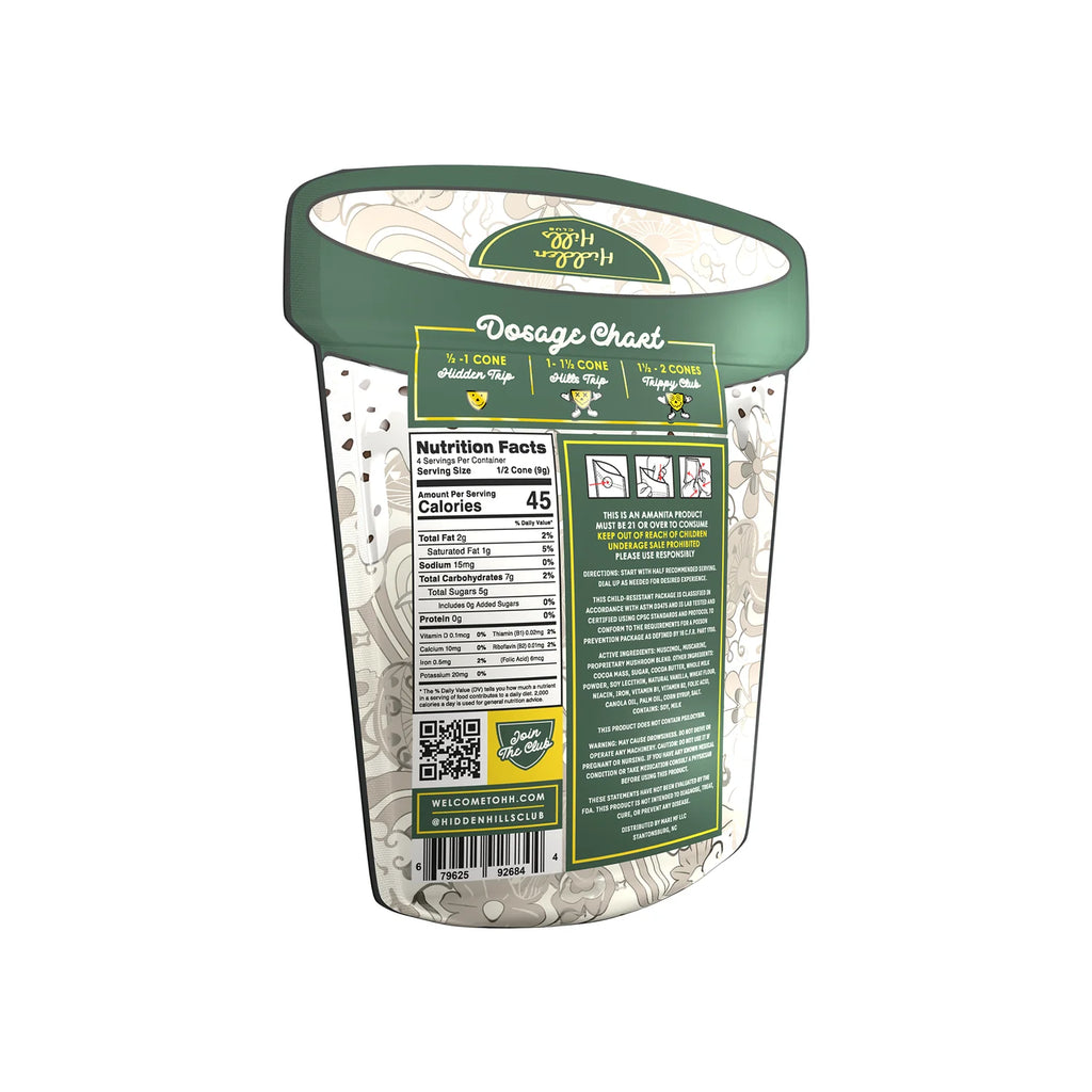 The Hidden Hills Trippy Mushie Conez is the ultimate treat for anyone looking to embark on a magical journey. The dosage chart for each 2-pack lets you pick your adventure: one cone for the hidden trip, one and a half cones for the hills trip, or two cones for the Trippy Club. Made with love, these cones are a Manita creation, infused with Muscimol and Muscarine. The unique mushroom blend they use makes these conez stand out. Each cone is meticulously crafted to ensure a consistent and reliable dose of mushroom goodness in every puff. Hidden Hills Trippy Mushie Conez are more than just a treat; they're a gateway to a new world of possibilities.